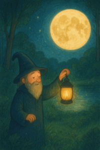 Her gece, dolunay doğduğunda tepesine gümüş kaplı bir şapka takar, eline camdan yapılmış bir fener alır, ve ormanın içine girermiş. Sabah olduğunda köy meydanına gelir, “Taze ay ışığı isteyen var mı?” diye bağırırmış.