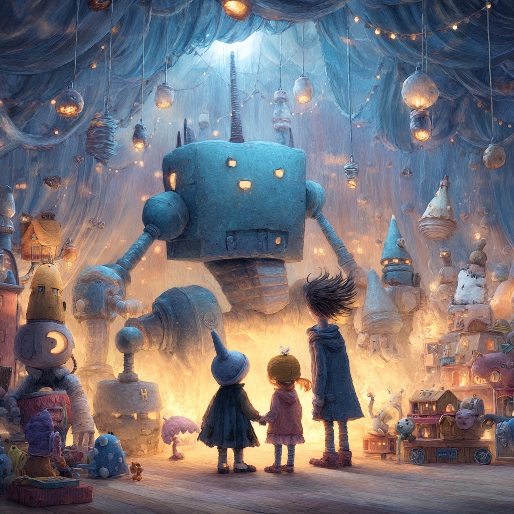 - Çocukların robot oyuncaklarla oynaması, masumiyet ve hayal gücü ile teknolojinin birleşimini simgeler.
