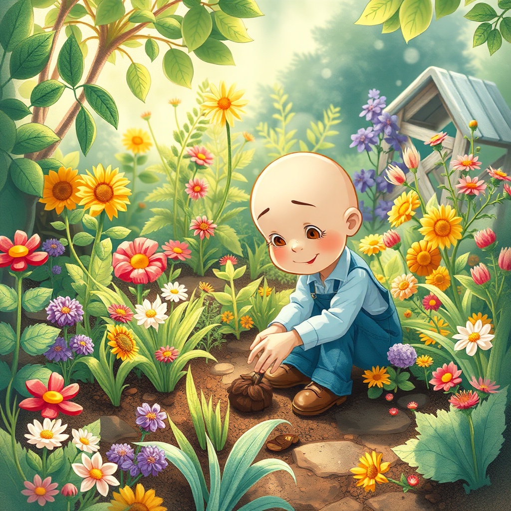 Bir zamanlar, güzel bir köyde, Kel adında sevimli bir oğlan yaşardı. Kel’in en sevdiği şey, doğayı keşfetmek ve renkli bahçelerde oynamaktı. Bahçeye ilk girdiğinde, yumuşak çimenlerin üzerinde yürürken kuşların şarkılarını dinlerdi ve etraftaki güzel renkleri görürdü.