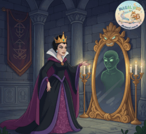 Kraliçe aynaya tekrar sordu: “Ayna ayna, şimdi benden güzeli var mı?” Ayna: “Pamuk Prenses hâlâ hayatta ve senden güzel!” dedi. Kraliçe cadı kılığına girip zehirli bir elma hazırladı. Ormana gitti, kapıyı çaldı: “Güzel elmalarım var, tatlı mı tatlı!” Cüceler uyarmıştı ama Pamuk Prenses dayanamadı, bir ısırık aldı ve bayıldı.