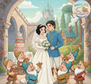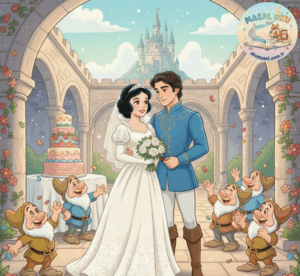 Pamuk Prenses prensle evlendi. 7 cüce sarayda en kıymetli misafirler oldu. Her akşam birlikte şarkılar söylediler, dans ettiler. Ve sonsuza dek mutlu yaşadılar.