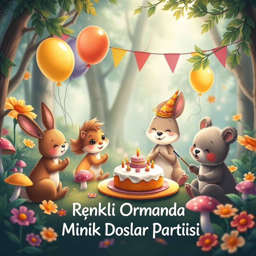 Pofpof hemen mutlu olmuş ve arkadaşlarına haber vermiş: “Tık tık tık! Ormana bir parti yapıyoruz! Gelin, herkes gelin!” Hop hop hop, herkes sevmiş. Orman hayvanları sıralanmış: Minik bir kelebek, tatlı mı tatlı bir tavşan ve renkli bir sincap.